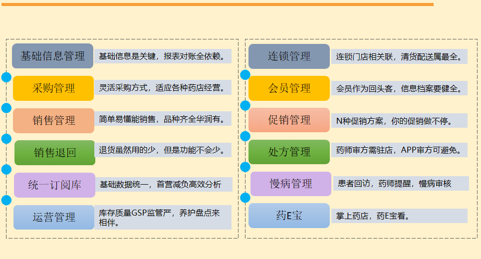 针对社会药房而建设的零售ERP,实现药店日常进销存管理,促销管理、会员积分管理、会员慢病管理、处方引流、移动审方等功能